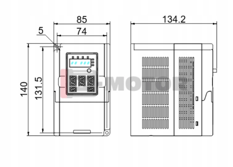 - Demontowalny panel operatorski z niezawodnym wyświetlaczem typu LED (można sterować pracą falownika np. z drzwi szafy sterowniczej)