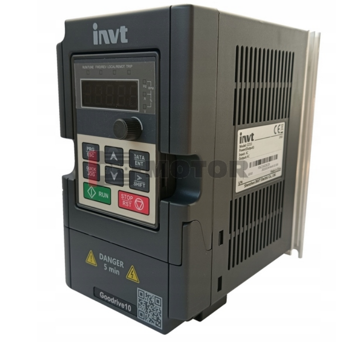 Falowniki serii Goodrive10 przeznaczone są do regulacji prędkości obrotowej trójfazowych silników indukcyjnych klatkowych. Charakteryzują się niezawodnym i precyzyjnym sterowaniem. Opis zacisków i sposób podłączenia jest prosty dla instalatora. Przemyślane, pogrupowane menu i przejrzysta instrukcja sprawia, że zaprogramowanie do danej aplikacji nie sprawia problemów. Dla bardziej zawansowanych aplikacji falownik został wyposażony w port RS485 z obsługą protokołu ModbusRTU. Falowniki świetnie sprawdzą się w aplikacjach takich jak pompy, wentylatory, przenośniki taśmowe, wiertarki stołowe itp.