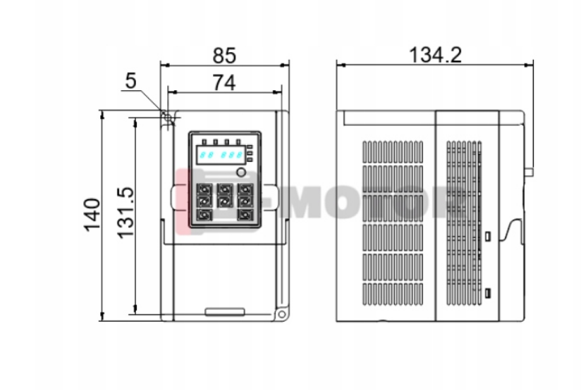 - Demontowalny panel operatorski z niezawodnym wyświetlaczem typu LED (można sterować pracą falownika np. z drzwi szafy sterowniczej)
