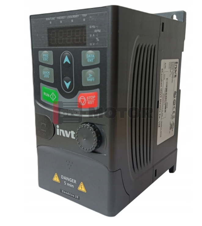 Falowniki serii Goodrive20 służą do regulacji prędkości obrotowej silników indukcyjnych klatkowych. Oferujemy je w zakresie mocy od 0,75kW do 110kW (większe moce w serii Goodrive200) z zasilaniem trójfazowym 400V oraz od 0,4kW do 2,2kW z zasilaniem jednofazowym 230V. Falowniki charakteryzują się nie tylko przystępną ceną, ale również dobrym wyposażeniem w skład, którego wchodzą: filtr EMC kategorii C3, moduł dynamicznego hamowania, zintegrowany panel operatorski LED oraz komunikacja RS485 z protokołem Modbus RTU. Zostały tak zaprojektowane, aby ich montaż i uruchomienie zajmowały jak najmniej czasu. Idealny dla tych, którzy poszukują falownika o sporych możliwościach w przystępnej cenie.