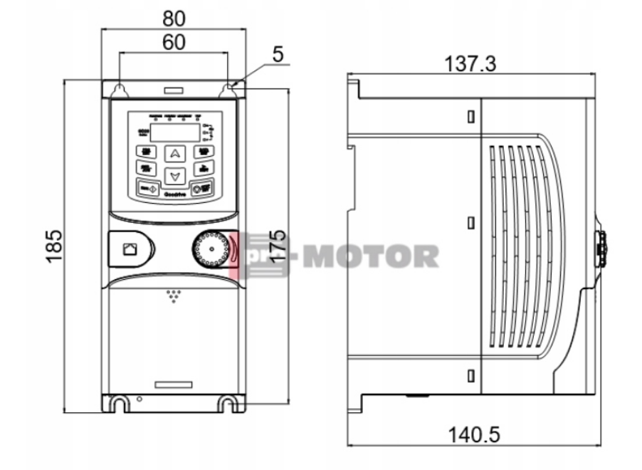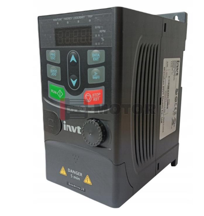 Falowniki serii Goodrive20 służą do regulacji prędkości obrotowej silników indukcyjnych klatkowych. Oferujemy je w zakresie mocy od 0,75kW do 110kW (większe moce w serii Goodrive200) z zasilaniem trójfazowym 400V oraz od 0,4kW do 2,2kW z zasilaniem jednofazowym 230V. Falowniki charakteryzują się nie tylko przystępną ceną, ale również dobrym wyposażeniem w skład, którego wchodzą: filtr EMC kategorii C3, moduł dynamicznego hamowania, zintegrowany panel operatorski LED oraz komunikacja RS485 z protokołem Modbus RTU. Zostały tak zaprojektowane, aby ich montaż i uruchomienie zajmowały jak najmniej czasu. Idealny dla tych, którzy poszukują falownika o sporych możliwościach w przystępnej cenie.