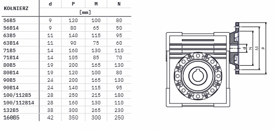 KOŁNIERZ POD SILNIK: 100 B5 ∅250mm
