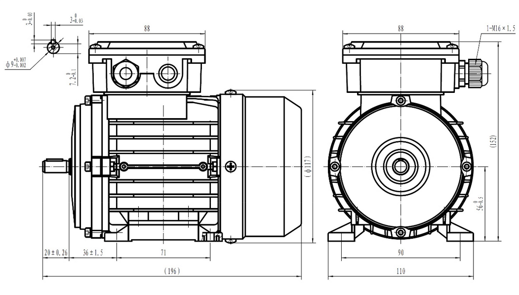 Silnik posiada moc 0,09kW, co czyni go idealnym wyborem do zastosowań, w których wymagana jest praca przy niskim obciążeniu lub jako silnik pomocniczy. 1400 obrotów na minutę gwarantuje szybką i płynną pracę bez wibracji, co jest istotne przy precyzyjnych procesach produkcyjnych.