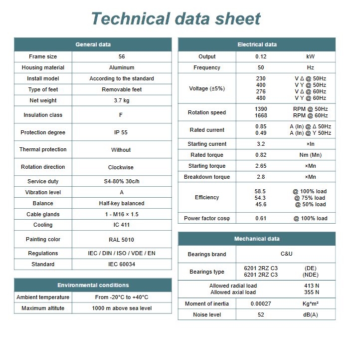 Kod producenta: MS 56 3-4 B14 ( 0,12kW 1400obr/min)