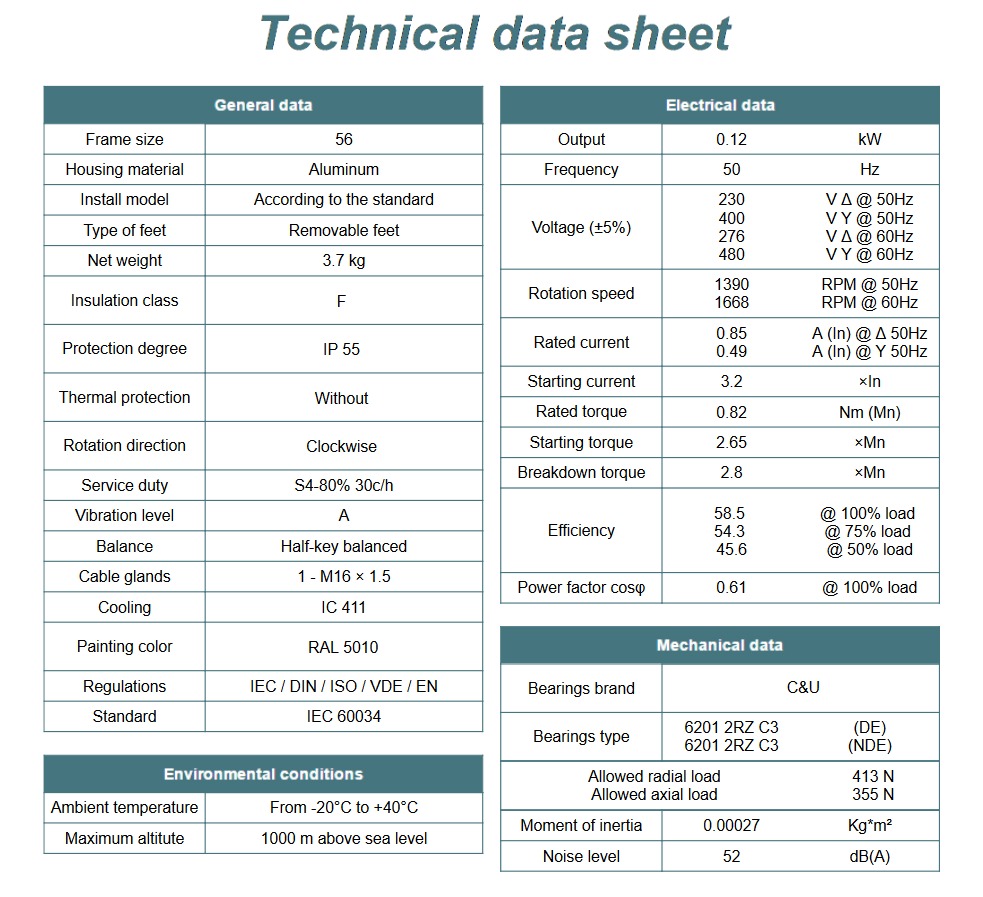 Kod producenta: MS 56 3-4 B3 (0,12 kW 1400 obr/min)