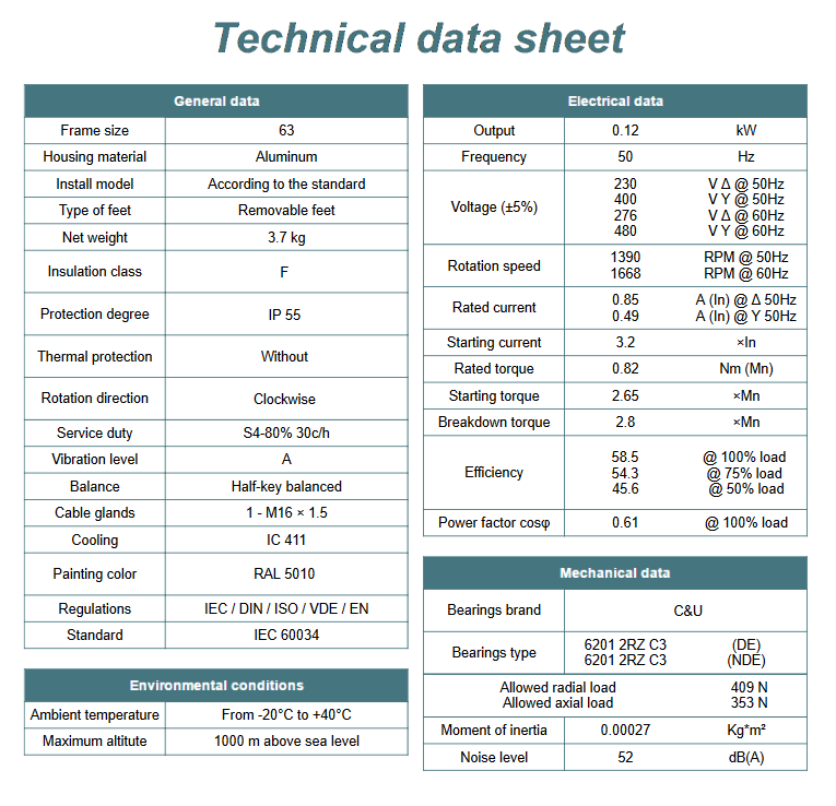 Kod producenta: MS 63 1-4 B3 (0,12 kW 1400 obr/min)