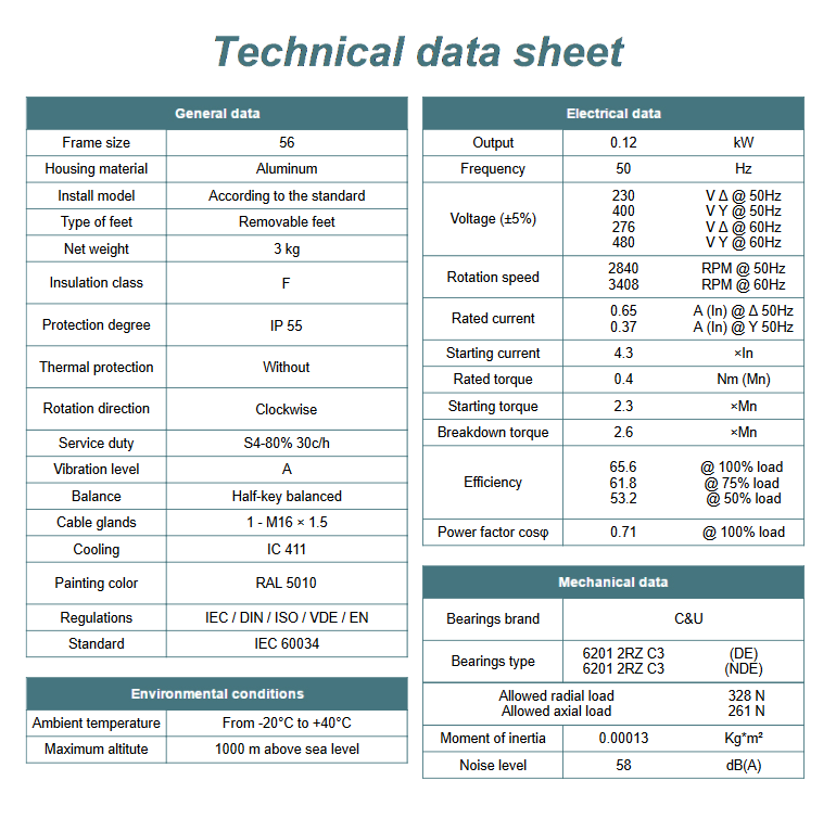 Kod producenta: MS 56 2-2 B14 ( 0,12kW 2800obr/min)
