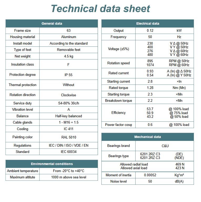 - Moc znamionowa kW - 0,12
