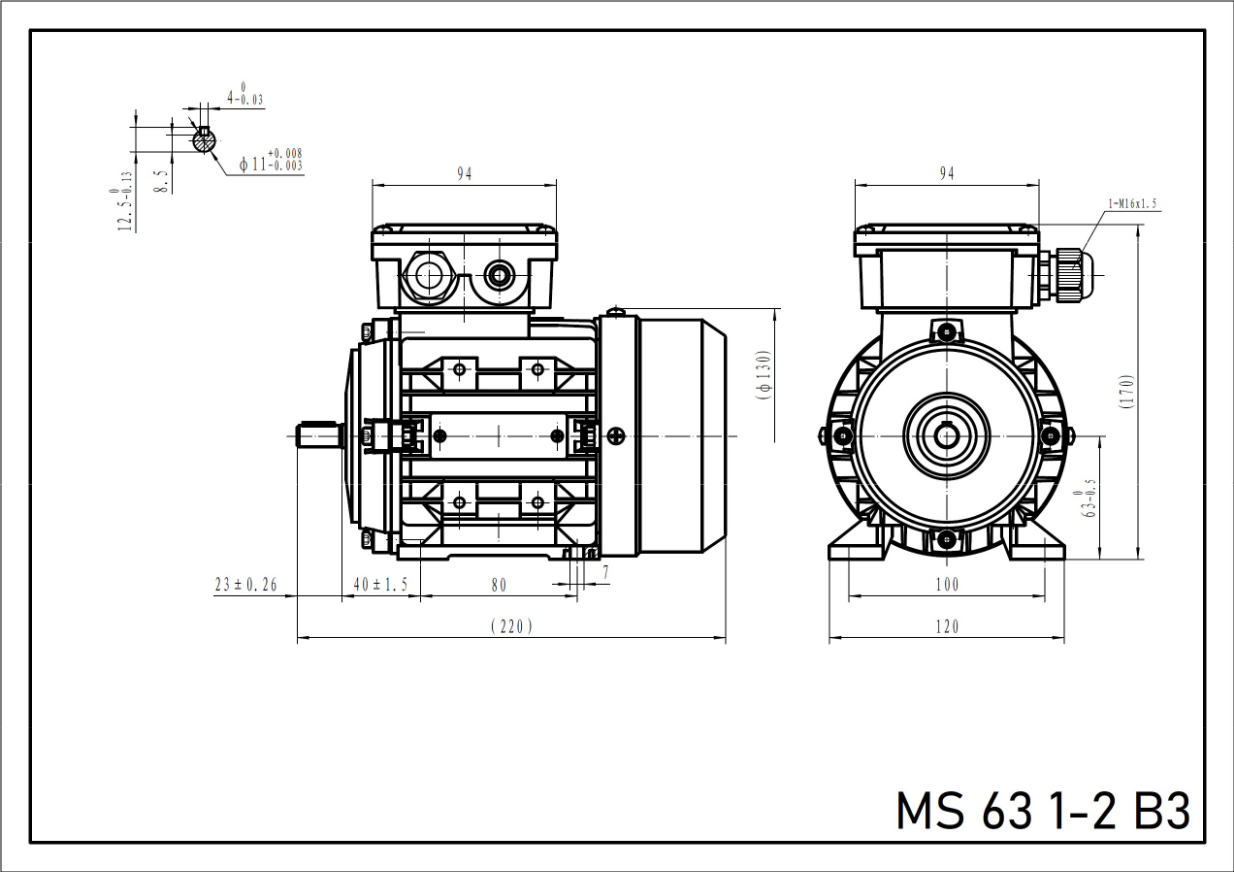 Silnik jest wyposażony w obudowę typu B3, co oznacza, że jest on przeznaczony do montażu poziomego. Jego konstrukcja odporna jest na drgania i wibracje, co gwarantuje długotrwałą i bezawaryjną pracę bez potrzeby częstej konserwacji.
