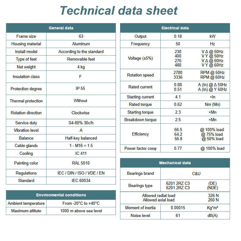 Kod producenta: MS 63 1-2 B5 (0,18kW 2800 obr/min)