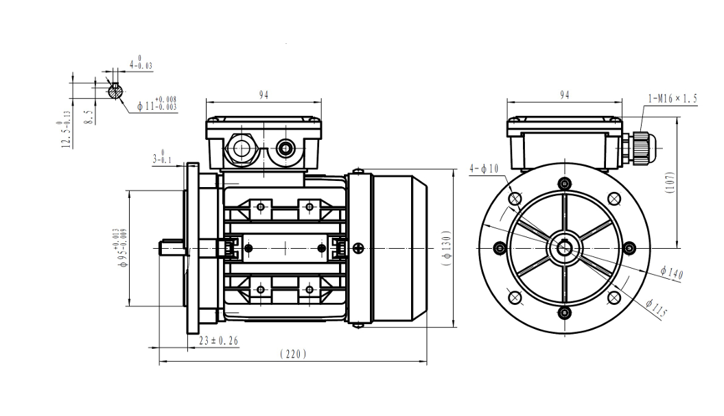 Silnik ten został wyposażony w specjalną obudowę typu B5, co oznacza, że jest samodzielny i może być montowany na stojaku lub płycie. Jest niezwykle łatwy w montażu i wyposażony w mocną osłonę, która zapewnia bezpieczeństwo użytkowania. Wytwarzane przez niego wibracje i hałas są minimalne, co przekłada się na komfort użytkowania oraz wydłużoną żywotność silnika.