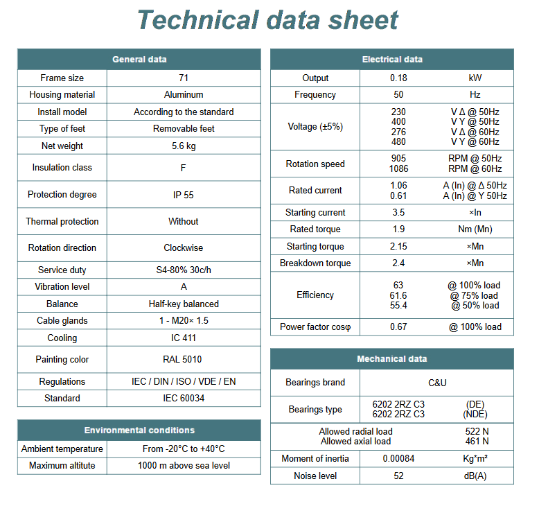 Dzięki zastosowaniu klasy ochronności IP55, silnik jest odporny na pył i wilgoć, co pozwala na stosowanie go w różnych warunkach panujących w przemyśle. Co więcej, spełnia także normy bezpieczeństwa i posiada certyfikaty potwierdzające jego jakość.