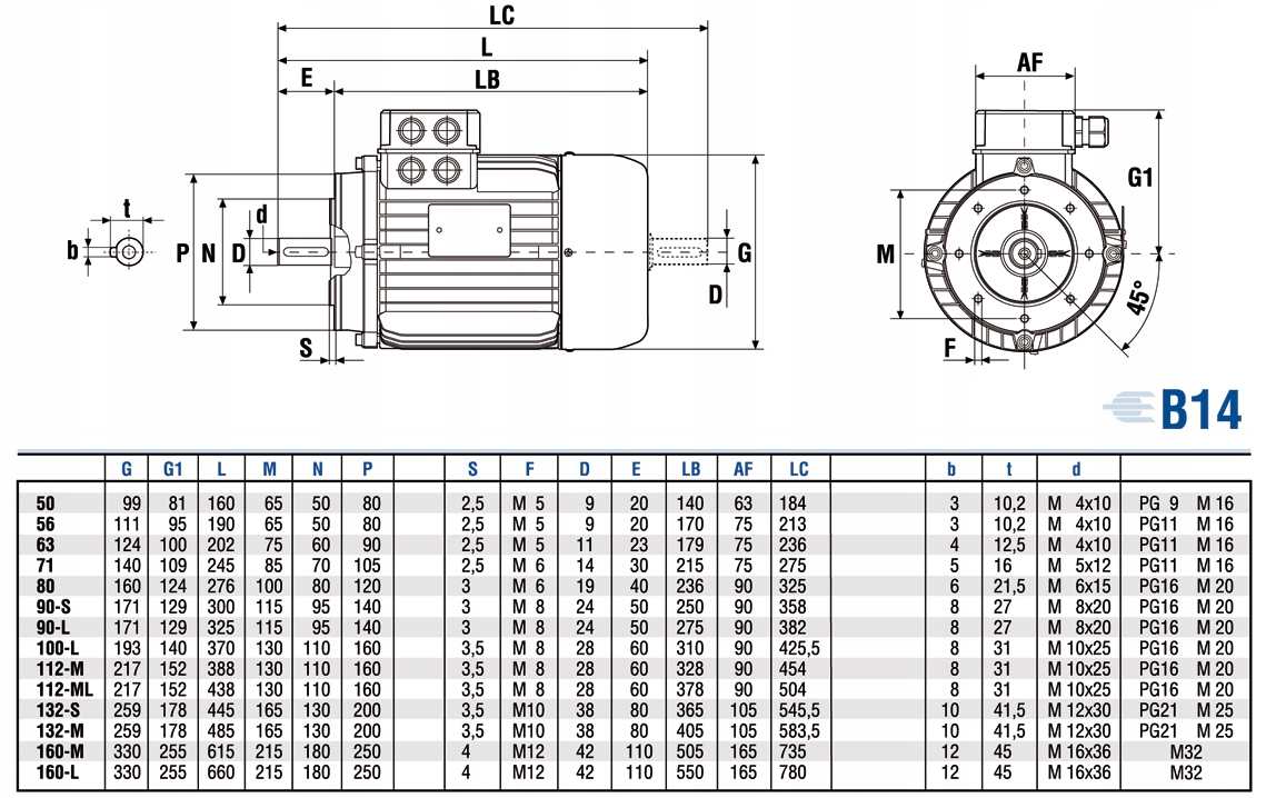 Kod producenta: MS 63 3-4 B14 ( 0,25kW 1400obr/min)