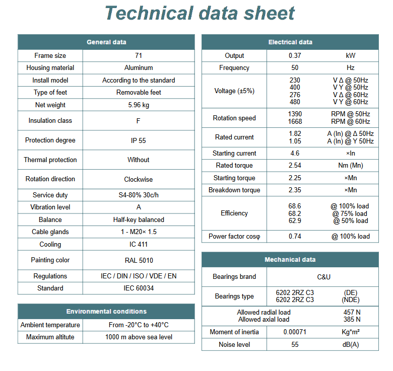 Podsumowując, silnik elektryczny 0,37kW 1400 obr/min. 71 B14 to niezawodne i efektywne urządzenie, które spełni wymagania nawet najbardziej wymagających klientów. Dzięki swoim parametrom i solidnej konstrukcji, zapewnia wydajną pracę w różnych zastosowaniach, idealnie sprawdzając się zarówno w warunkach przemysłowych, jak i domowych.