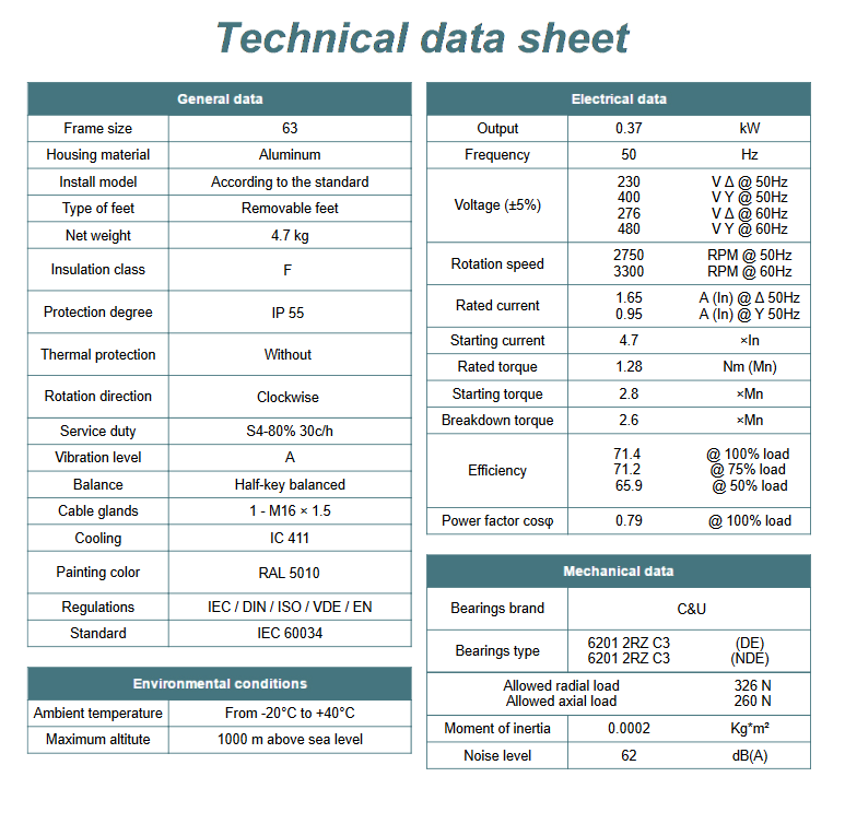- Moc znamionowa kW - 0,37