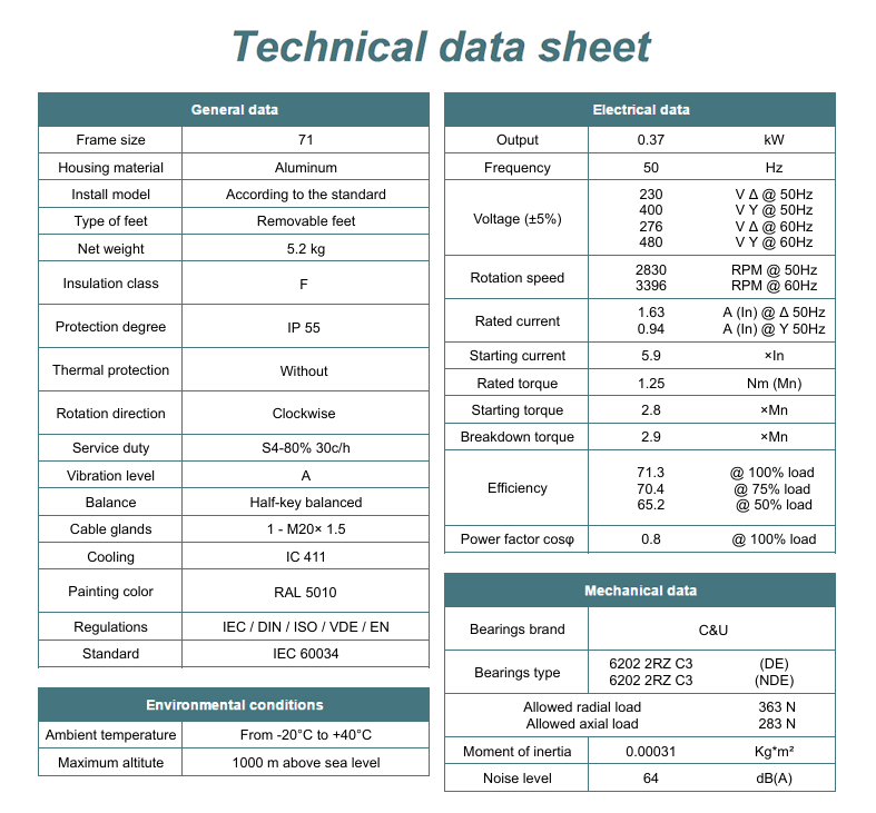 • Moc znamionowa kW - 0,37