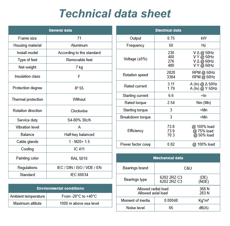 Kod producenta: MS 71 3-2 B14 (0,75kW 2800 obr/min)
