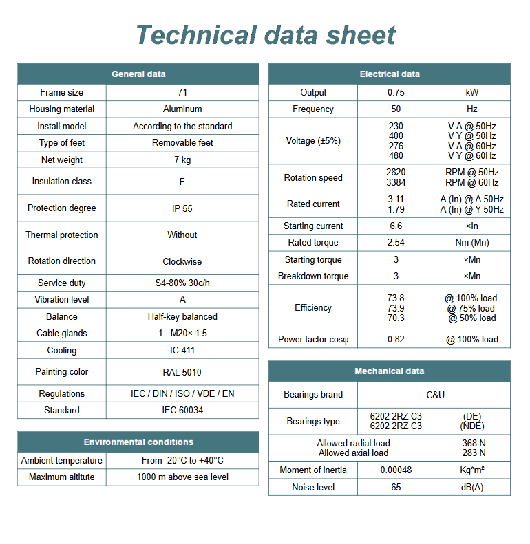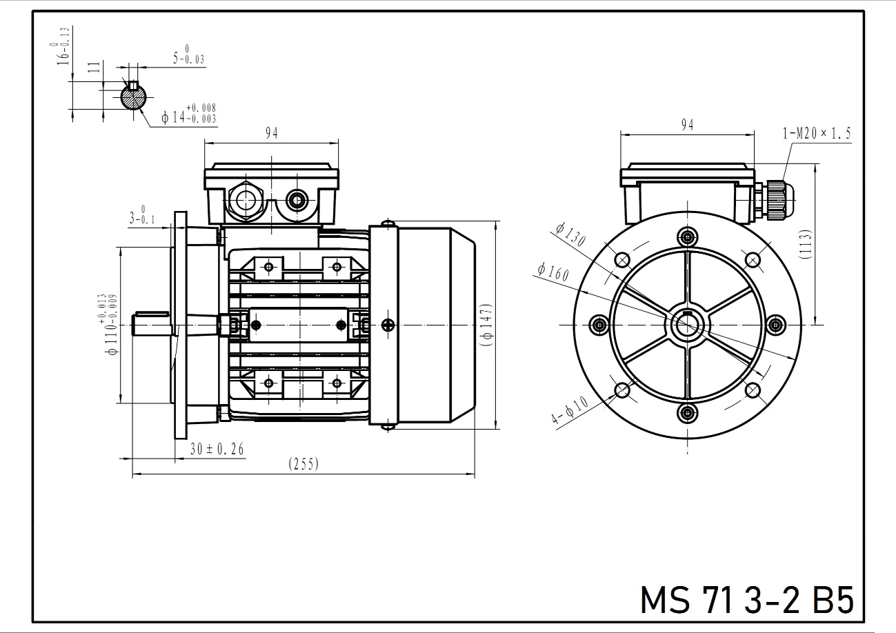 Kod producenta: MS 71 3-2 B5 (0,75kW 2800 obr/min)
