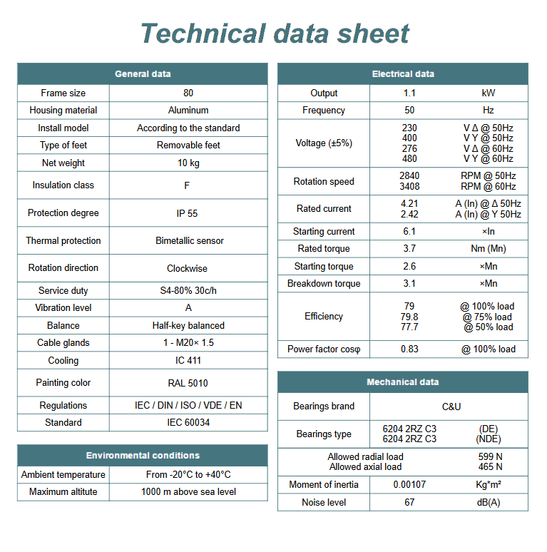 Kod producenta: MS 80 2-2 B14 ( 1,1kW 2800obr/min)
