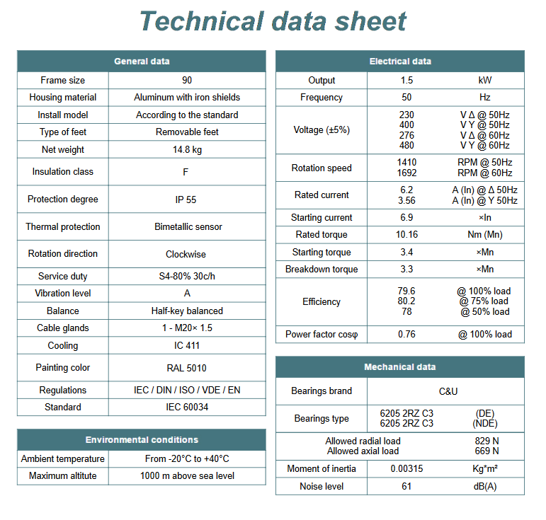 Podsumowując, silnik elektryczny 1,5kW 1400 obr/min. 90 B14 łączy w sobie wysoką jakość wykonania, wydajność, niezawodność i bezpieczeństwo, dzięki czemu jest to idealny wybór dla wszystkich, którzy poszukują solidnego i wydajnego silnika do swoich zastosowań przemysłowych lub domowych.