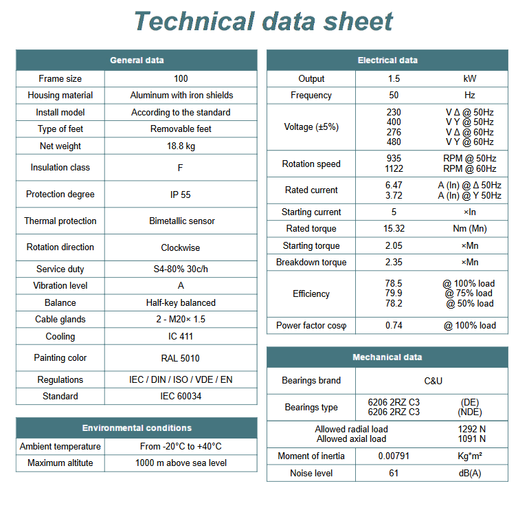 Silnik elektryczny 1,5kW 900 obr/min. 100 B14 to wysokiej jakości i niezawodne urządzenie, które idealnie sprawdzi się w różnego rodzaju maszynach i urządzeniach przemysłowych. Jest to silnik asynchroniczny, który charakteryzuje się wysoką sprawnością, znacznym momentem obrotowym oraz cichą pracą.