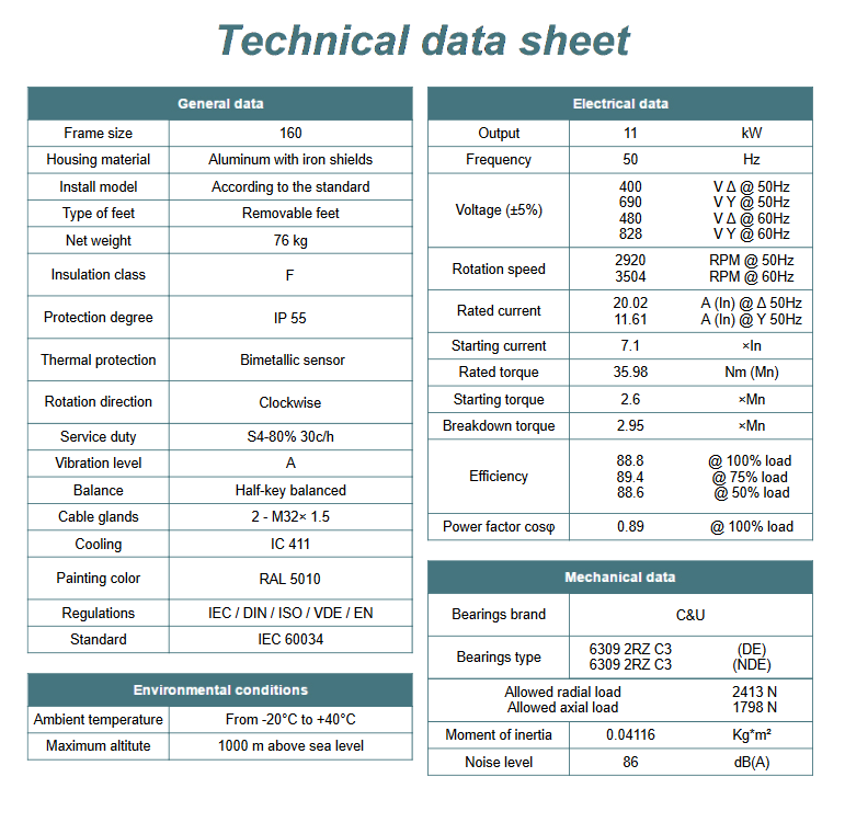 Kod producenta: MS 160M1-2 B3 (11kW 2800 obr/min)