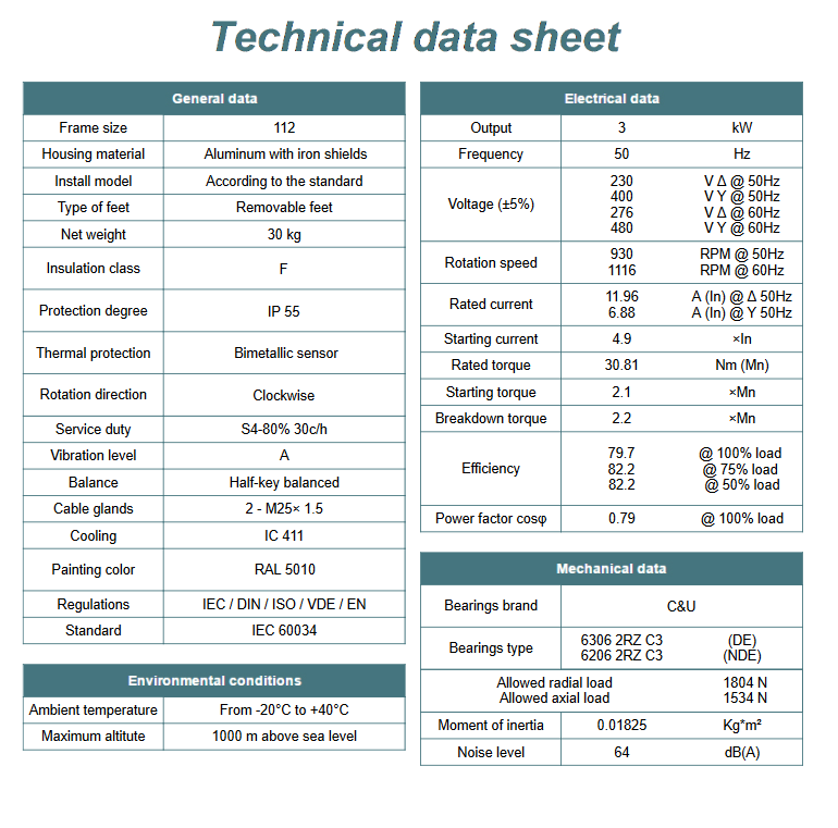Kod producenta: MS 112L-6 B14 ( 3kW 900obr/min)