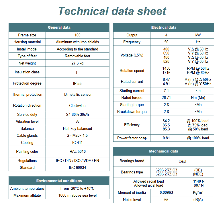 Kod producenta: MS 100L3-4 B3 (4kW 1400 obr/min)