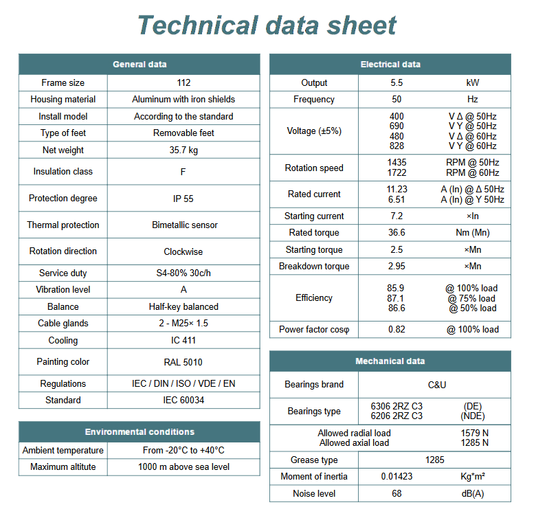 Kod producenta: MS 112L-4 B3 (5,5kW 1400 obr/min)