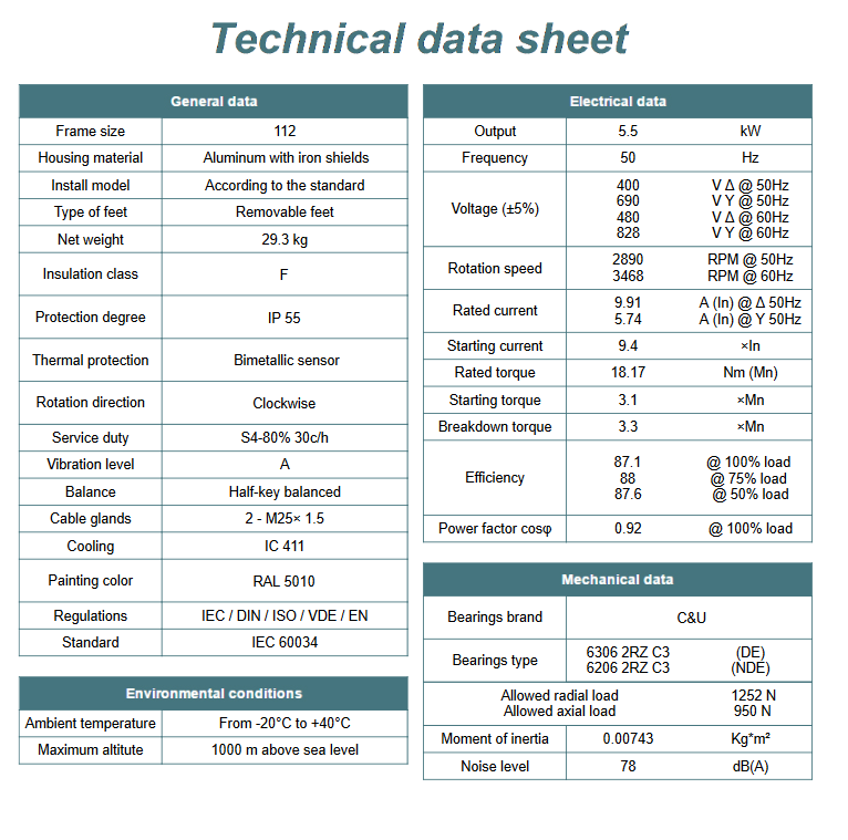Kod producenta: MS 112L-2 B14 (5,5kW 2800 obr/min)