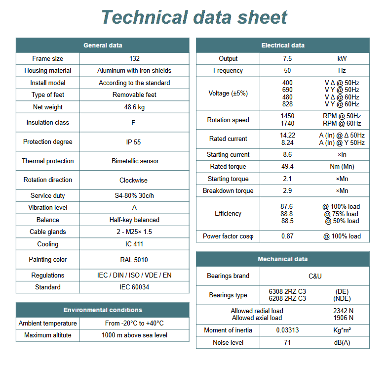 Kod producenta: MS 132M-4 B3 (7,5kW 1400 obr/min)