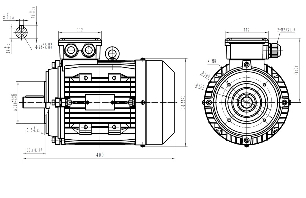 Silnik jest wyposażony w standardowe mocowanie 112 B5, co oznacza, że można go łatwo zamontować w większości występujących na rynku urządzeń i maszyn. Dodatkowo, dzięki swoim kompaktowym rozmiarom, doskonale sprawdzi się nawet w miejscach o ograniczonej przestrzeni.