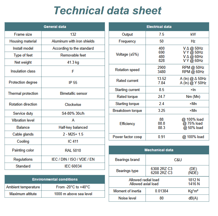 Kod producenta: MS 132S2-2 B5 (7,5kW 2800 obr/min)