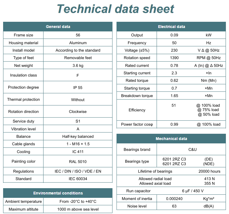 Silnik elektryczny jednofazowy 0,09kW 1400 obr/min. 56 B14 to wysokiej jakości urządzenie, które pozwala na przekształcanie energii elektrycznej w energię mechaniczną. Posiada moc 0,09kW, co sprawia, że jest idealny do zastosowań domowych oraz małych przemysłowych.