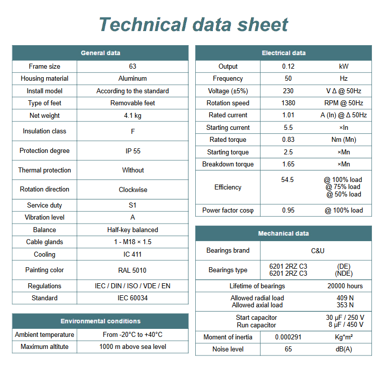 Ten solidnie wykonany silnik jest wyposażony w pojedynczą fazę i posiada moc 0,12 kW. Dzięki temu jest wystarczająco wydajny, aby poradzić sobie z różnymi zadaniami, a jednocześnie zużywa niewiele energii elektrycznej, co jest bardzo ważne z punktu widzenia ekonomicznego.