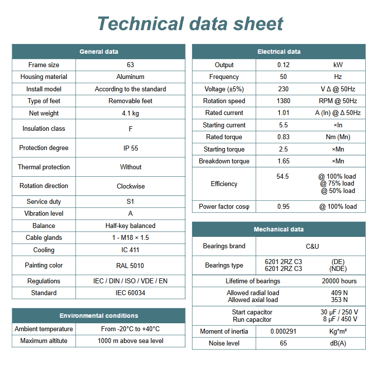 Kod producenta: ML 63 1-4 B3 (0,12 kW 1400 obr/min)