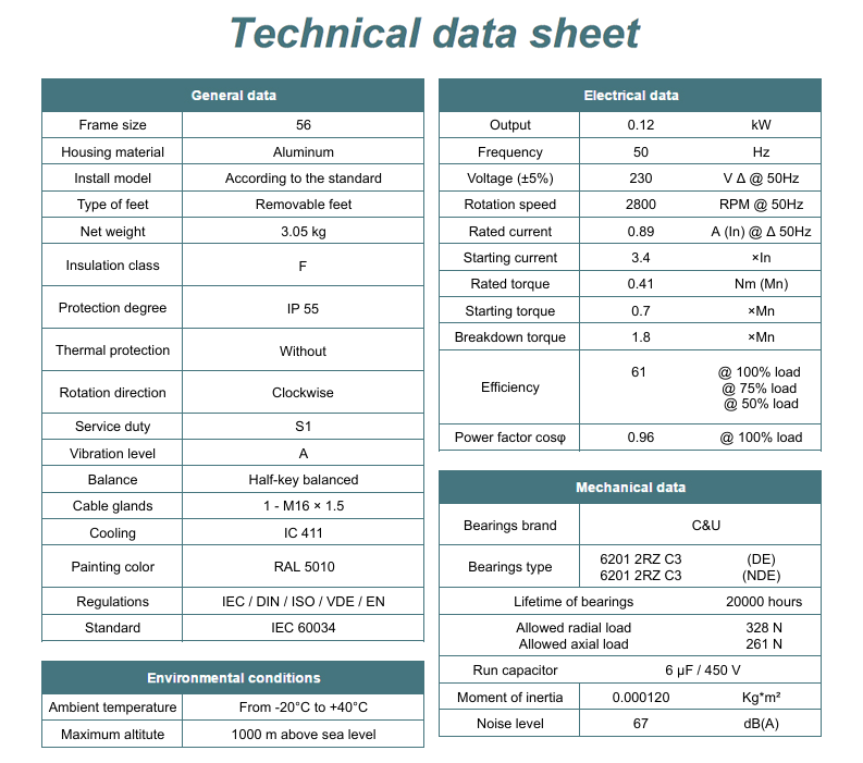 - Moc znamionowa kW - 0,12