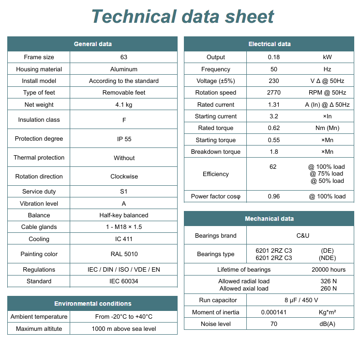 - Moc znamionowa kW - 0,18