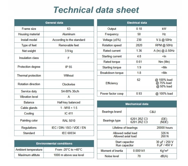Silnik elektryczny jednofazowy 0,18kW 2800 obr/min. 63 B3 jest niezawodnym urządzeniem przeznaczonym do zastosowań przemysłowych oraz domowych. Dzięki swojej małej mocy oraz niewielkim wymiarom, doskonale sprawdza się w różnego rodzaju urządzeniach i maszynach, gdzie wymagane jest działanie o stałym obrocie.