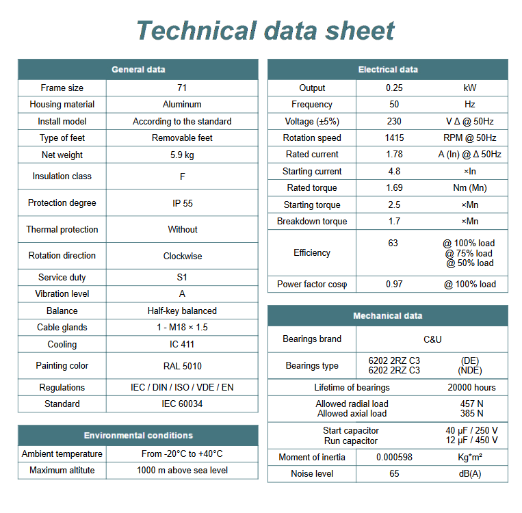 Kod producenta: ML 71 1-4 B3 (0,25kW 1400 obr/min)