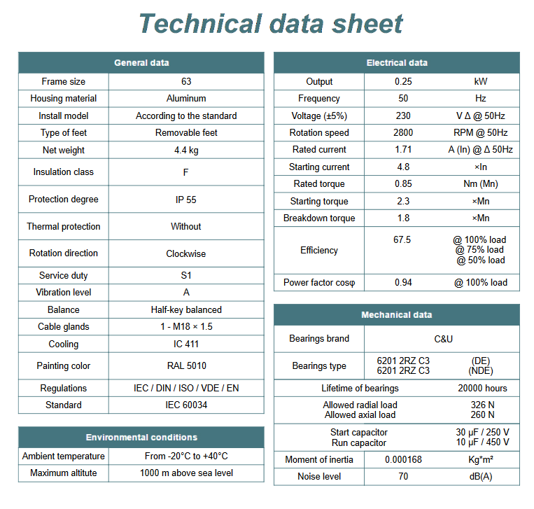 - Moc znamionowa kW - 0,25