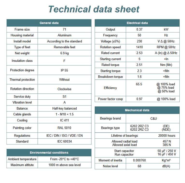 - Moc znamionowa kW - 0,37