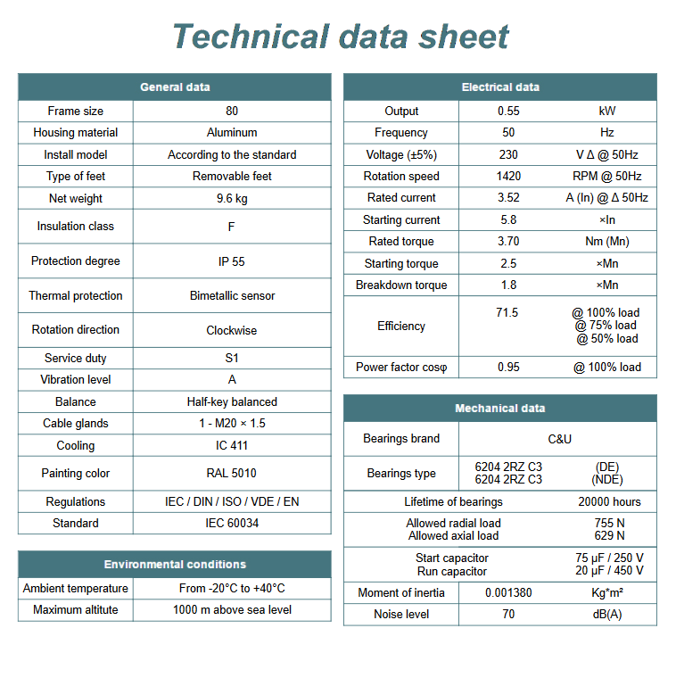 - Moc znamionowa kW - 0,55