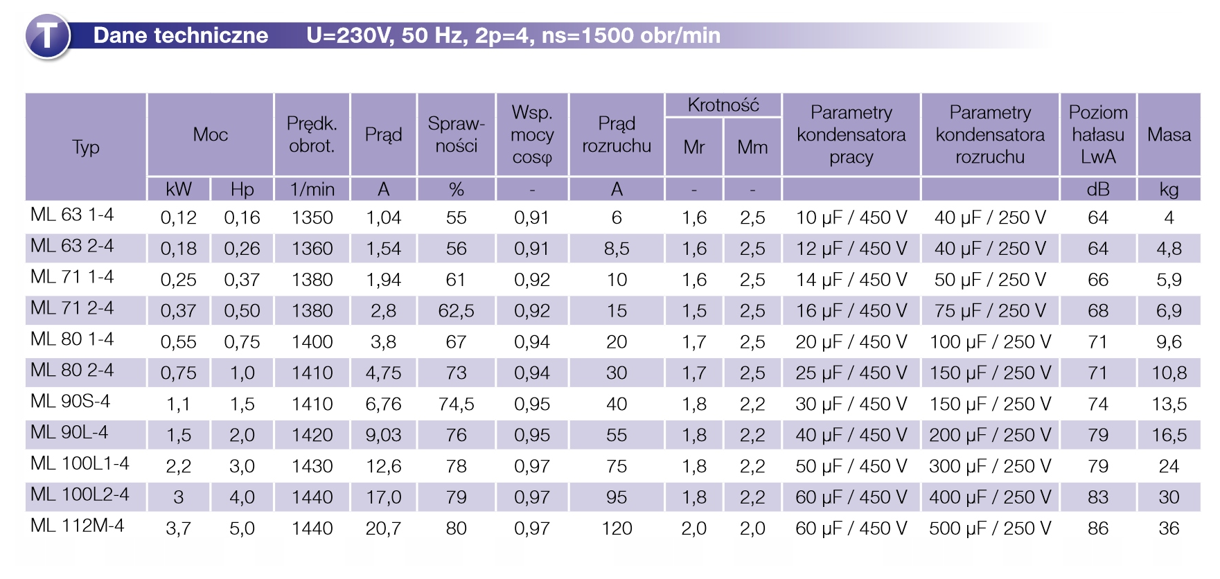 - Napięcie zasilania - Jednofazowe 230V