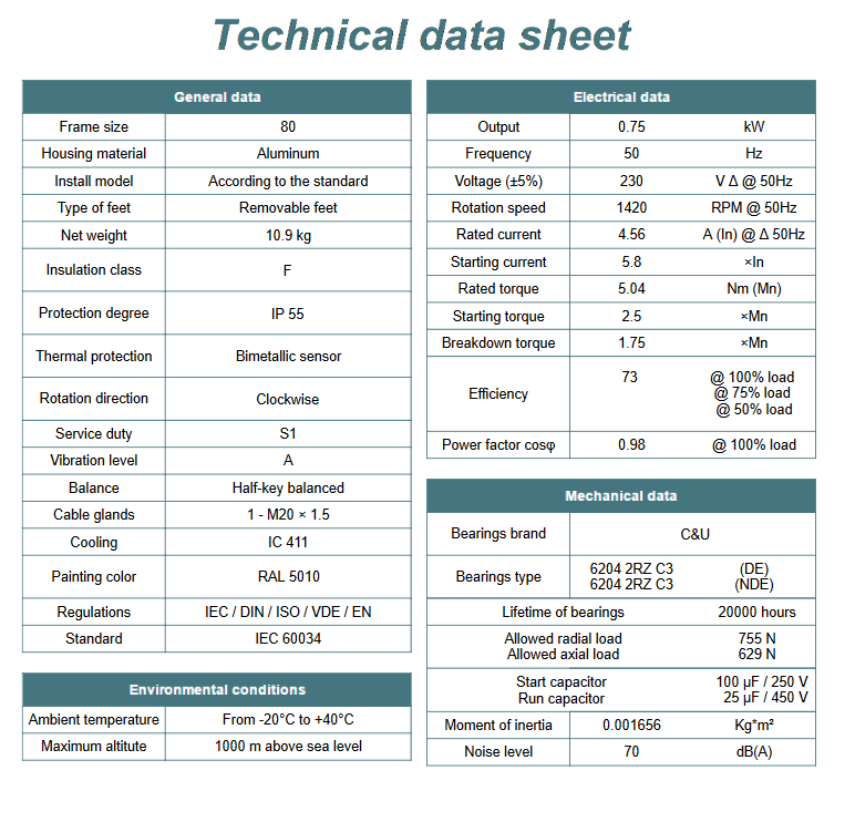 Silnik elektryczny jednofazowy 0,75kW 1400 obr/min. 80 B5 jest niezawodnym i wydajnym urządzeniem, idealnym do napędu różnego rodzaju maszyn i urządzeń. Jego moc wynosząca 0,75kW oraz prędkość obrotowa 1400 obr/min. zapewniają skuteczne i płynne działanie, a jednofazowe zasilanie pozwala na łatwy montaż i użytkowanie.